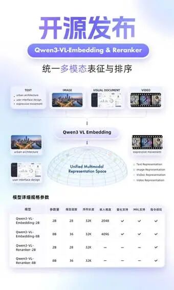 On January 8, the Alibaba Tongyi QianWen team released two open-source models: Qwen3-VL-Embedding and Qwen3-VL-Reranker.