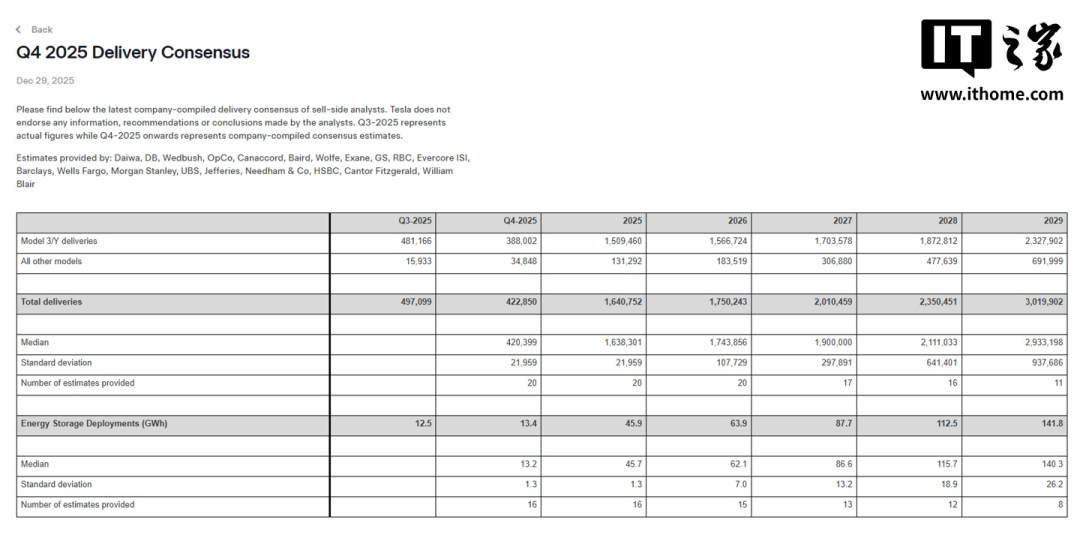 Recently, Tesla unveiled its fourth-quarter delivery forecast via its investor relations website, revealing that analysts generally expect 420,000 deliveries in Q4, marking a 15% year-over-year decline and even falling short of Wall Street's prior estimate of 440,000.