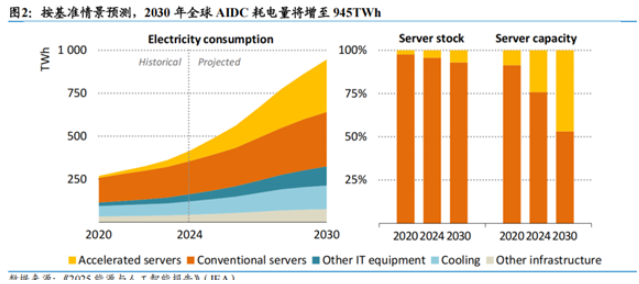 From the demand perspective, Guotai Junan Securities highlights that the training and inference of AI large models hinge on the continuous operation of massive high-performance chips (such as GPUs and ASICs), imposing extremely stringent requirements on the power supply for AI data centers (AIDC). Calculations by the China Academy of Information and Communications Technology suggest that by 2030, China's annual electricity consumption for data centers could exceed 400 billion kilowatt-hours, accounting for nearly 6% of total societal electricity use. The International Energy Agency further projects that by 2030, global data center electricity consumption will surge to approximately 945 terawatt-hours, representing slightly less than 3% of total global electricity use—more than double the 2024 level and exceeding Japan's current annual total electricity consumption. As AI technology continues to rapidly evolve, the strain on power resources is intensifying.