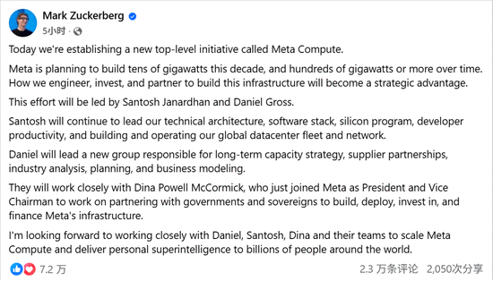 Recently, Mark Zuckerberg officially unveiled the premier strategic initiative, [Meta Compute], with the ambitious goal of deploying tens of gigawatts of computing clusters within the next decade and surging towards hundreds of gigawatts in the long run. This move implies that the future power consumption of Meta's data centers will rival that of a medium-sized nation.