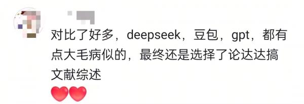 Moreover, for certain users' specific needs, mainstream C-end application large models on the market may prove ineffective. Some netizens reported that neither DeepSeek, Doubao, nor GPT were useful for writing literature reviews.