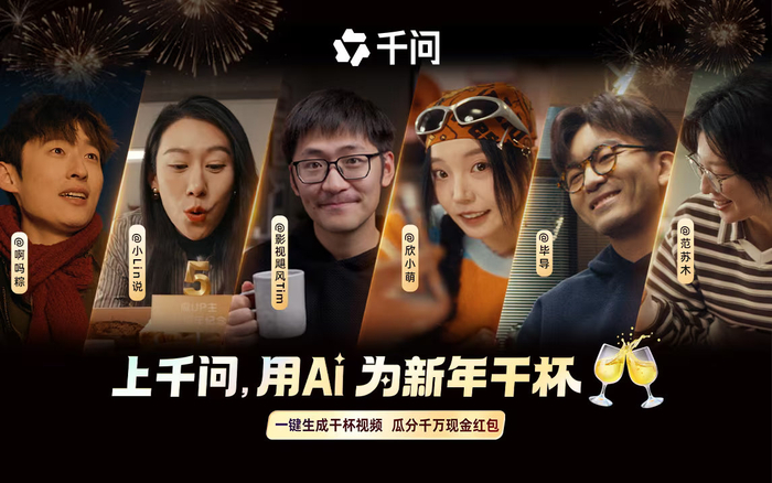 In fact, this shift began with the latest Bilibili New Year's Eve countdown party, where Alibaba secured exclusive naming rights for Qianwen and designed a new red envelope game: users could generate a 'New Year Cheers' video using the Qianwen app to claim cash red envelopes of up to 888 yuan and participate in sharing a multi-million yuan prize pool.