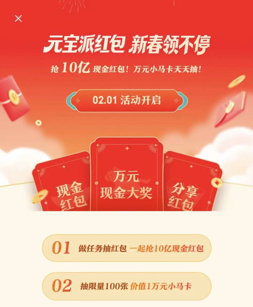 The AI sector's festive spirit for 2026 was amped up by Tencent and Baidu around the Laba Festival. On January 25, Tencent Yuanbao and Baidu Wenxin unveiled plans to distribute 1 billion and 500 million yuan in cash red packets during the Spring Festival, with individual packets reaching up to 10,000 yuan.