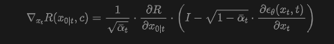 Before introducing our method, we first analyze diffusion guidance approaches that leverage generative gradients to guide denoising trajectories. Based on Bayesian rules, an approximate expression for can be derived, where the first term corresponds to the unconditional score, requiring no additional optimization. Thus, this work focuses on the second term, injecting reward gradients into the denoising process: