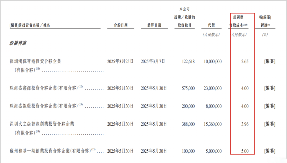Standard Robots' prospectus reveals that from March to May 2025, seven institutions, including Casicapital and Source Code Capital, along with core management, intensively transferred existing shares, with some transfer prices discounted by up to 72% from Series D financing valuations.