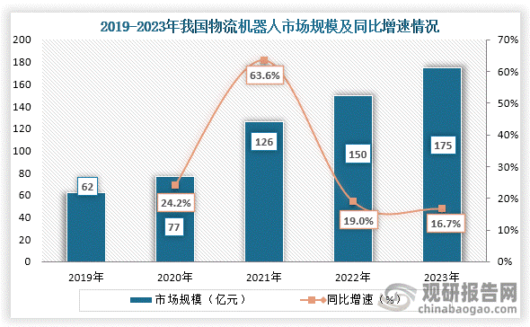 From 2019 to 2023, China's logistics robot market size expanded continuously, reaching approximately 17.5 billion yuan in 2023—a 16.7% year-on-year increase.