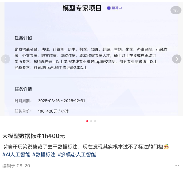 Consequently, a new breed of annotation tasks has emerged, boasting hourly rates exceeding a thousand yuan, and gaining traction on major platforms and crowdsourcing communities. These tasks include evaluating AI responses for hidden biases, refining misleading medical advice, and comparing the neutrality of two political topic responses.