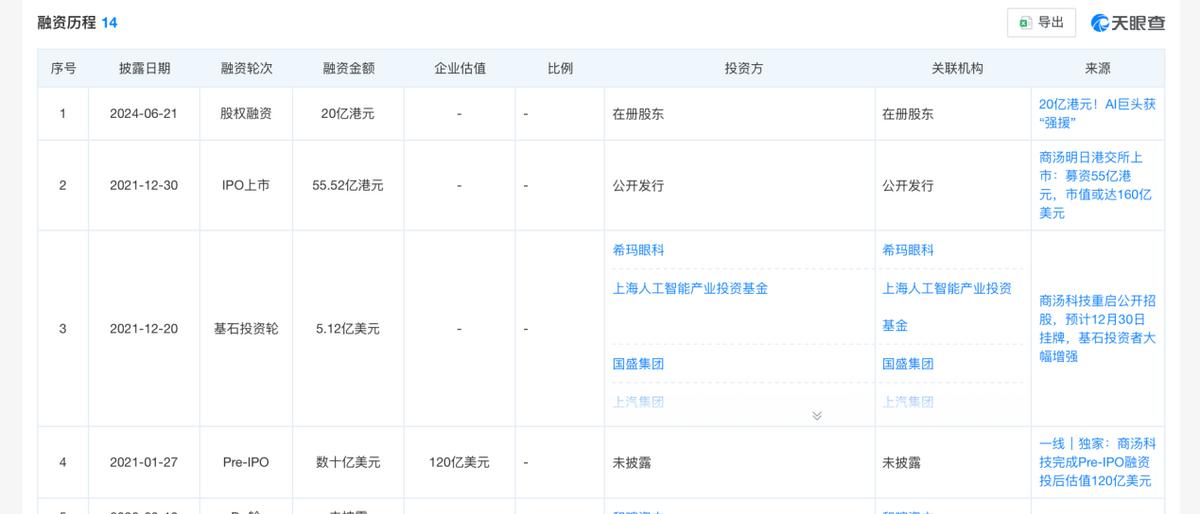 According to Tianyancha APP, based on incomplete statistics, including its IPO, SenseTime has undergone at least nine rounds of financing.