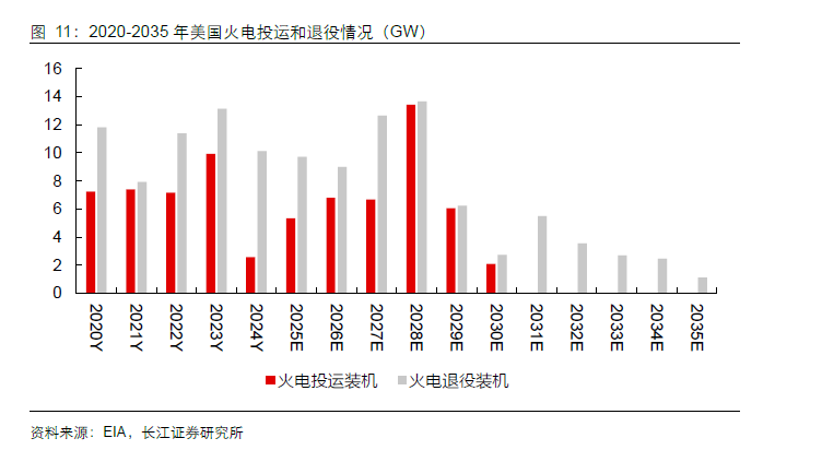 'Aging' Crisis: 528 GW (accounting for over 50%) of high-quality base load sources (thermal, hydro, and nuclear) have been in service for more than 30 years, leading the United States to enter a peak period of thermal power retirement since 2010. More severely, according to EIA forecasts, from 2020 to 2030, the retirement volume of base load units will exceed their new additions every year, meaning that before the AI demand explosion, the system's 'reliable capacity' has been continuously net losing.