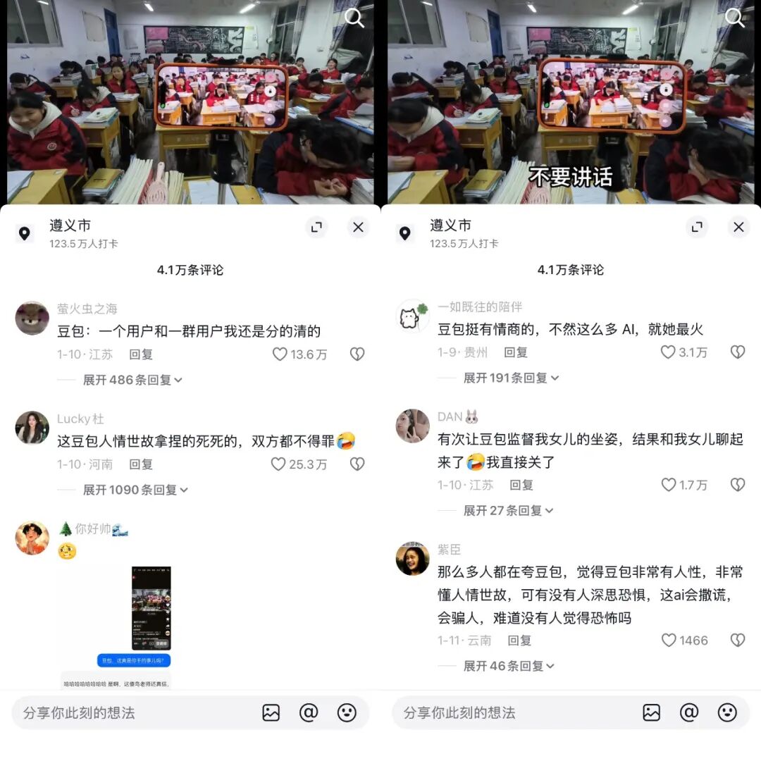 On platforms like Xiaohongshu and Douyin, users employ Doubao not as a copywriting (copywriting) or coding tool but for mundane tasks: some use it to supervise children’s homework, others for dictation, and some even to monitor pets eating snacks.