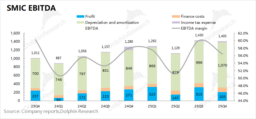 From the EBITDA (Earnings Before Interest, Taxes, Depreciation, and Amortization) perspective, SMIC reported US$1.4 billion in EBITDA this quarter, experiencing a slight decline.