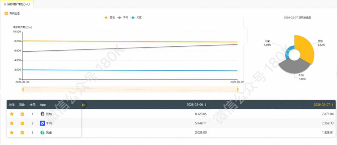 On the same day (February 7), Doubao's DAU reached 78.71 million. Doubao made its debut in June 2023, whereas Qianwen commenced its beta testing in November 2025. According to numerous media reports, Qianwen has attained a DAU nearly on par with Doubao's three-year achievement in a mere three months.