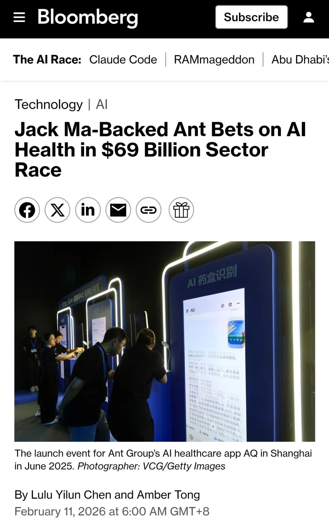 Bloomberg also stated in a recent report that "competitors, including Tencent and DeepSeek, are expanding their healthcare expertise, but Ant Group established a strong foothold early on."