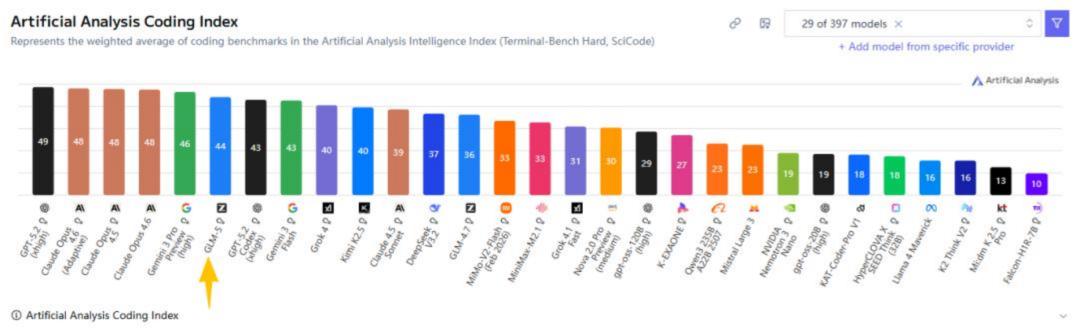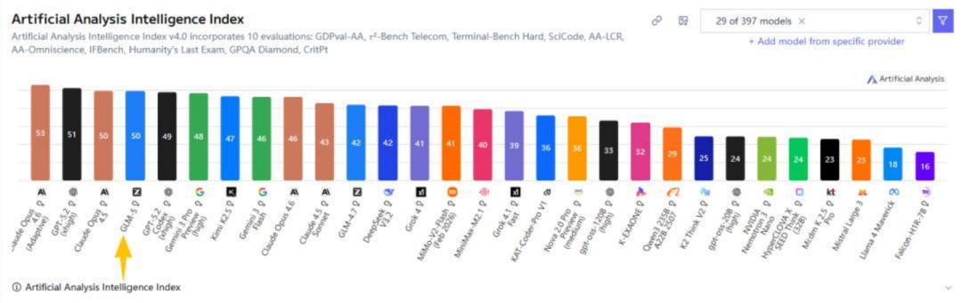 Zhipu's newly released GLM-5 breaks this tradition. According to Artificial Analysis test results, GLM-5 ranks 4th globally in intelligence, 6th in programming ability, and 3rd in agency capability, closely trailing top closed-source models. In the AA-Omniscience hallucination rate test, GLM-5 reduced the hallucination rate to 34%.