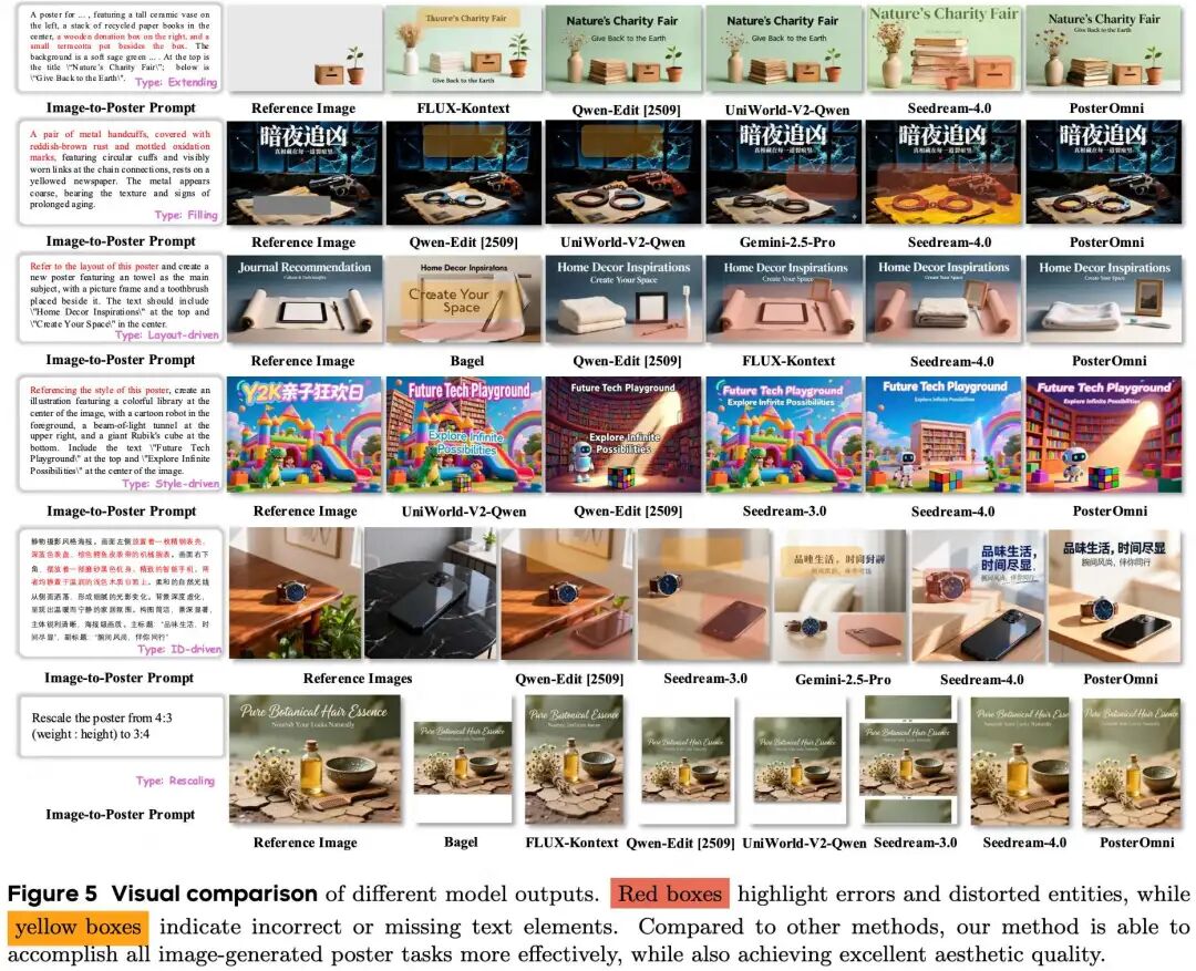 Vs. Seedream-4.0: PosterOmni's average performance exceeded Seedream-4.0, proving that open-source single models can now handle complex demands at a usable level.