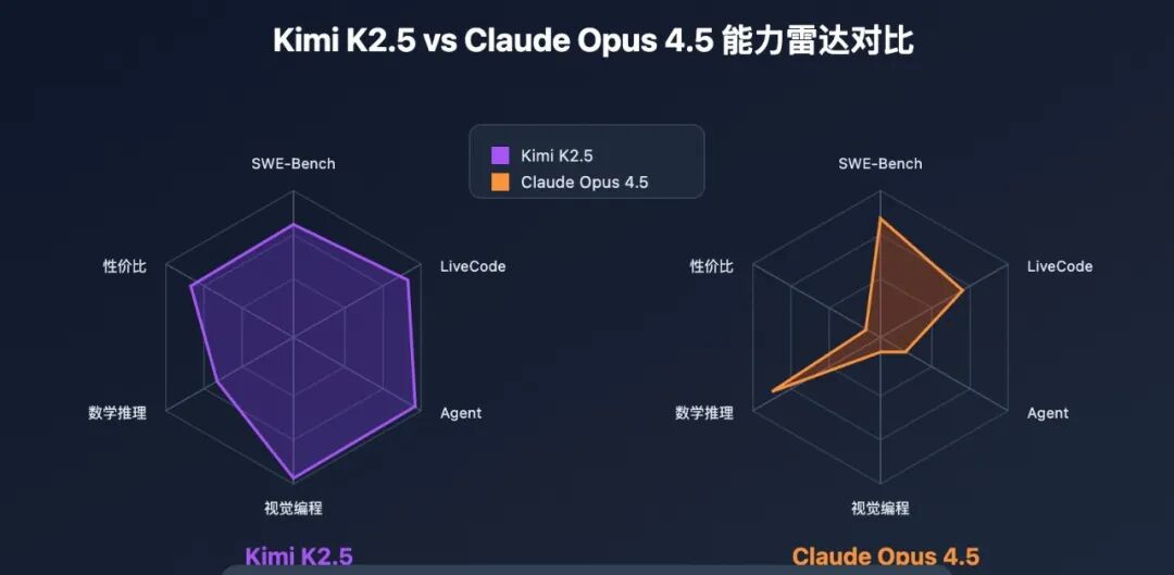 In third-party developer communities, comparisons between Kimi K2.5 and Claude Opus 4.5 (ranked alongside GPT-4o and Gemini 1.5 Pro in the global top tier) show that K2.5 outperforms Claude in mathematics, visual programming, context window, and web interaction capabilities while offering lower pricing—making it highly attractive to small-to-medium development teams.