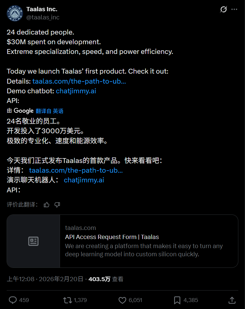 Taalas's exploration may seem radical today, even facing the dilemma of being 'outdated upon factory release,' but it poses a profoundly philosophical industry question: