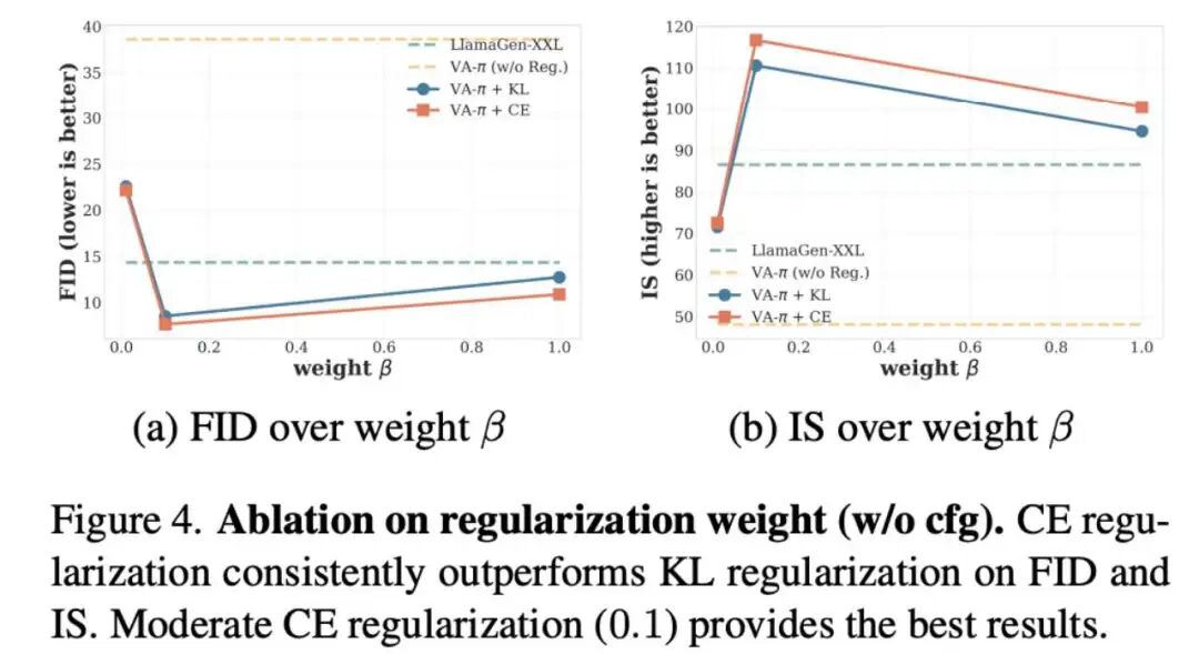 Lightweight CE regularization excels (Fig 4): When comparing KL divergence with cross-entropy (CE) regularization, CE demonstrates superior stability. More importantly, across a broad range of weight intervals (e.g., ), the model achieves an optimal balance between fidelity and diversity, eliminating the need for heuristic parameter tuning.