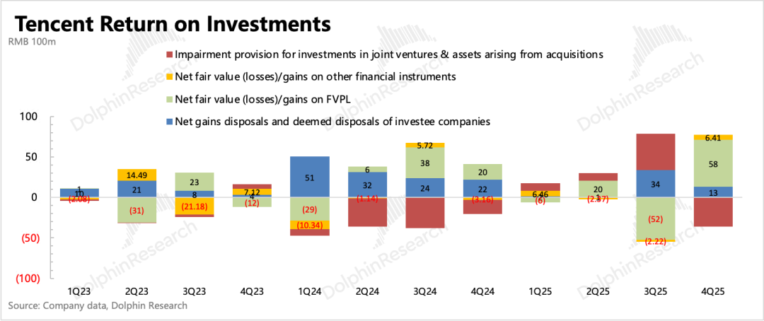 As of the end of Q4, the combined asset scale of the company's associates/joint ventures totaled RMB 348.7 billion, resulting in a calculated investment return rate of 7.8% (annualized) for Tencent, a slight decline from Q3.
