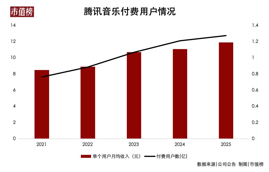 On the other hand, while the total user base continues to dwindle, Tencent Music's number of paying users grew by 5.3% to 127.4 million, and the average revenue per paying user (ARPPU) increased by 7.2% to 11.9 yuan. The number of super members also surpassed 20 million in 2025.