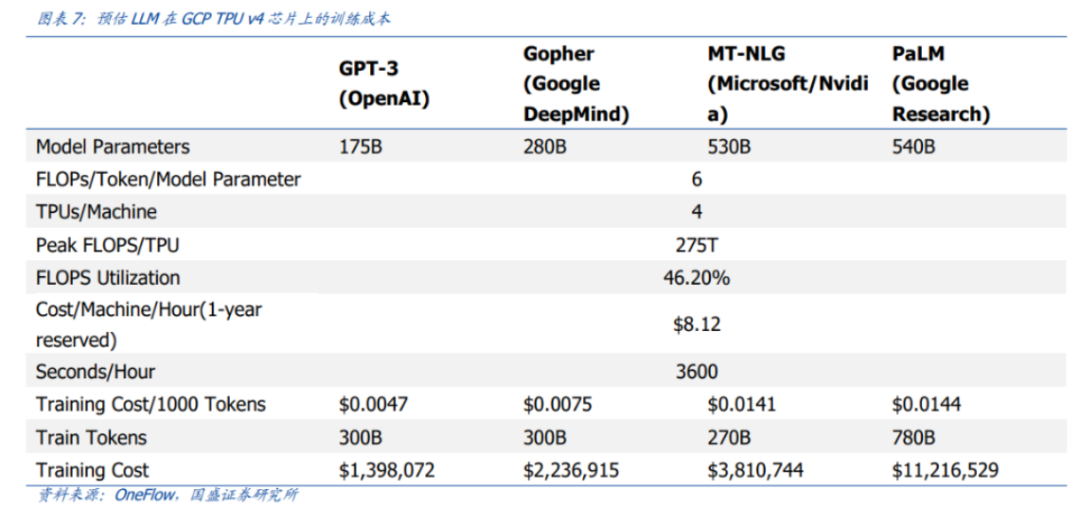 Based on parameter count and Token volume, Guosheng Securities estimated that training GPT-3 once costs approximately $1.4 million; for some larger LLM models, training costs range from $2 million to $12 million.