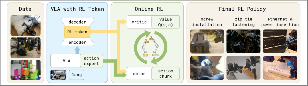 Recently, the Physical Intelligence (PI) team proposed the RL Token (RLT) method in their latest research paper, 'RL Token: Bootstrapping Online RL with Vision-Language-Action Models.' By constructing a compact interface between VLA and lightweight reinforcement learning, this method enables robots to achieve online optimization for precision manipulation with just a few hours of real-world interaction data. It effectively addresses the industry pain point of balancing generalization and precision in general-purpose models, providing a new technical pathway for dexterous robot manipulation.