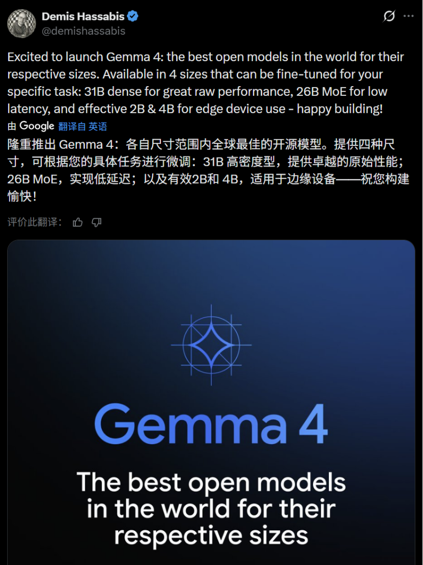 Google DeepMind discreetly released the Gemma 4 series models to the open-source community, without any prior hype or launch event.