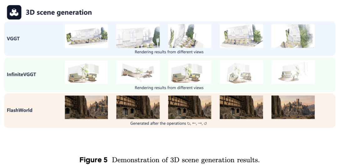 3D Generation: Tested models like VGGT for reconstruction effects from different viewpoints, noting that maintaining geometric consistency during large-scale camera movements remains a challenge.