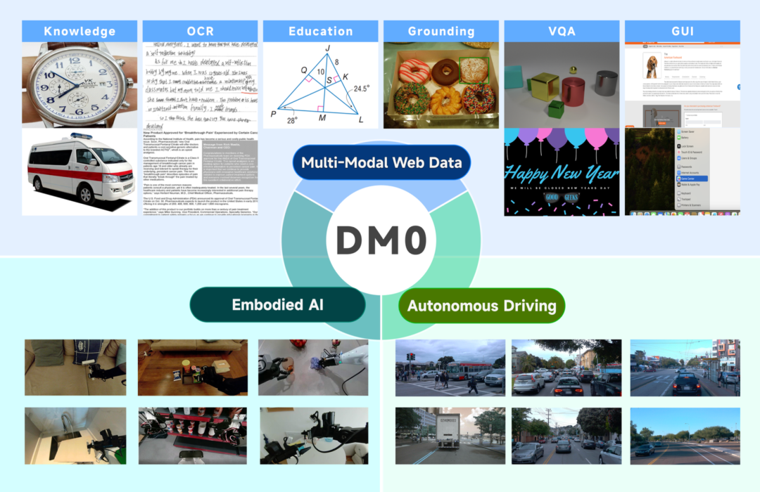 Zhou Erjin: Current embodied training transfers knowledge from existing systems to the physical world. VLA builds on internet-pretrained VLMs, adding action or robot data to acquire physical skills. However, its upper limit may be apparent—like a child raised solely on books until age 10 before learning to play soccer, limiting athletic development. That’s why our DM0 model adopts an embodied-native VLA approach, training internet and robot data jointly from day one—like a child who reads and plays sports equally from the start.