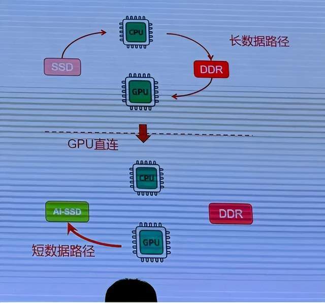Breaking CPU bottlenecks to prevent high-end GPU computing power from idling. GPUs' core value lies in computing output, but this output's effectiveness hinges on data transfer and storage collaboration. Traditional architectures require GPU data retrieval to pass through multiple stages: "SSD → CPU → memory → GPU," with CPU bandwidth bottlenecks becoming an industry pain point. AI-oriented SSDs' core breakthrough lies in semiconductor-level "direct collaboration," using interface technology to enable GPUs to bypass CPUs and establish direct data channels with SSDs. This change is far more than a speed boost—data transfer times are drastically reduced, eliminating GPU idle time due to data waits and resolving resource waste from high-end GPU computing power idling, fully unlocking core chips' performance advantages.