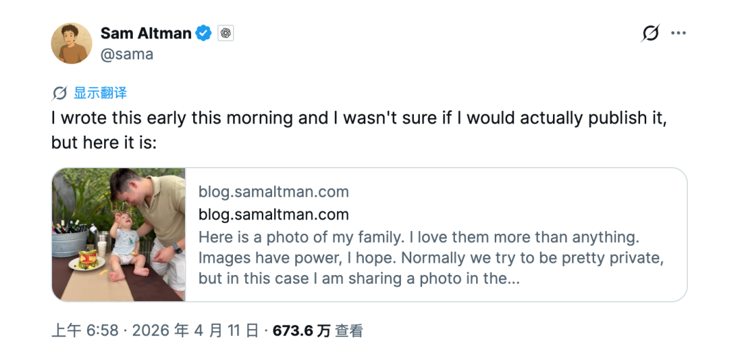 Following the first attack, Sam Altman posted a lengthy blog urging calm. He rarely shared photos of his family, including his partner and children, stating, "Here is a photo of my family; I love them more than anything." He believes in the power of imagery and hopes it will dissuade further attacks on his home.