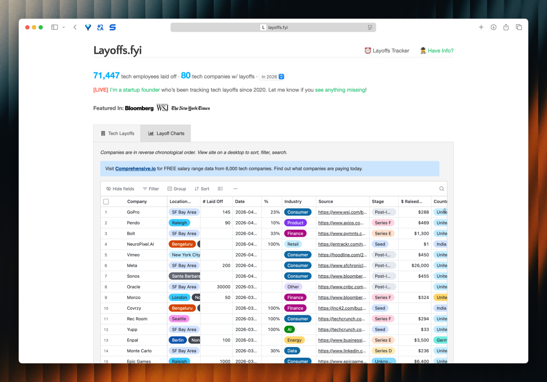 According to commercial data platform RationalFX, nearly 80,000 people were laid off in the global tech industry in the first quarter of this year, with about three-quarters occurring in the United States and nearly half attributed to the impact of artificial intelligence and work automation. The database Layoffs.fyi, which tracks tech layoffs, reports that over 70,000 tech workers have been laid off in 2026, involving 80 companies.