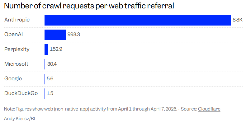 However, a recent set of data released by Cloudflare in early April 2026 ruthlessly exposes the truth of a data extraction led by Anthropic.