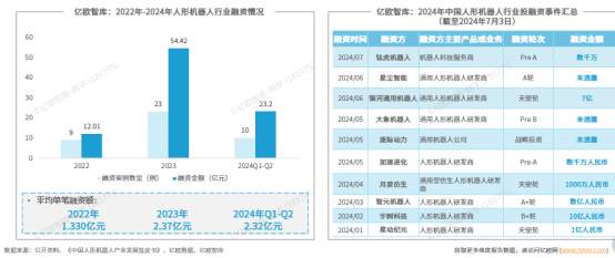 Specifically, from January to February 2024, the humanoid robot industry saw 10 investment rounds, with disclosed financing amounting to approximately 2.32 billion yuan. Among them, Unitree Robotics secured 1 billion yuan in its B+ round, while Galaxy General Robotics raised 700 million yuan, setting a new record for the highest angel round funding in 2024. These financing achievements underscore the continuous optimism of capital towards the humanoid robot industry and inject strong momentum into its future development.
