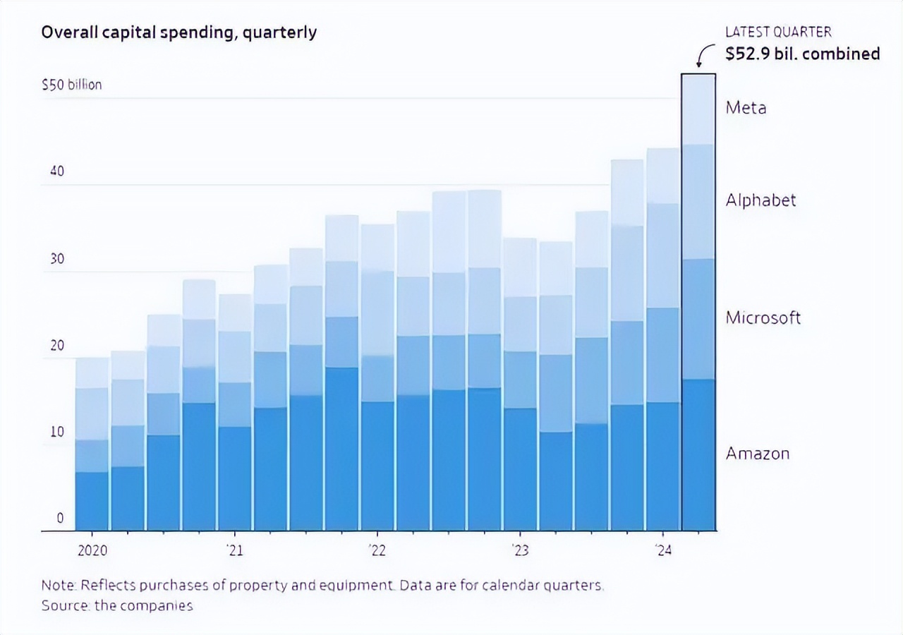 Taking Amazon, Microsoft, Alphabet, and Meta's quarterly capital expenditures as examples, the four giants collectively spent over $50 billion on AI investments in the second quarter of this year. Meta CEO Mark Zuckerberg announced that the company would purchase 600,000 GPUs by the end of 2024. Elon Musk also plans to acquire 300,000 GPUs by next summer.