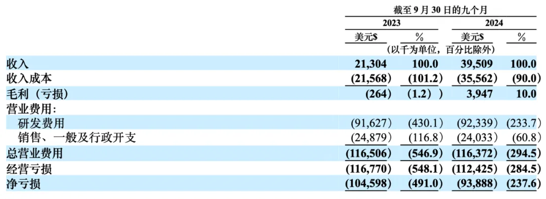 According to previous prospectus data, Pony.ai also disclosed some financial data for the first three quarters of 2024. Its overall revenue for the first three quarters increased by 85.5% year-on-year to $39.51 million.