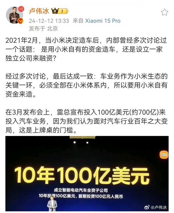 Compared to Baidu's approach of collaborating and investing in car manufacturing, Xiaomi has firmly chosen to manufacture cars on its own and has achieved initial success.