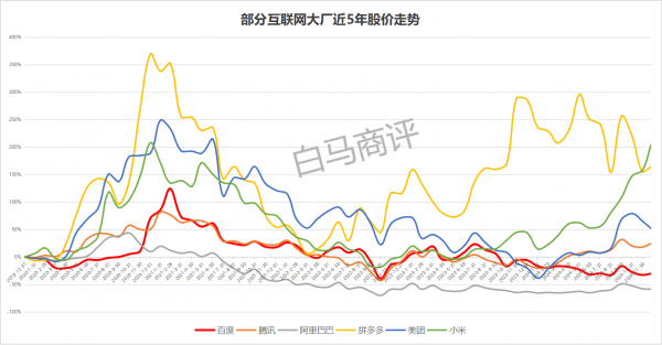 Xiaomi, which has successfully ventured into car manufacturing, and Pinduoduo, with its consistently impressive performance, have rebounded strongly. Meituan, which has turned a profit, and Tencent, with its solid moat and renewed growth, have emerged from their lows. However, Baidu and Alibaba are still "searching for the bottom."