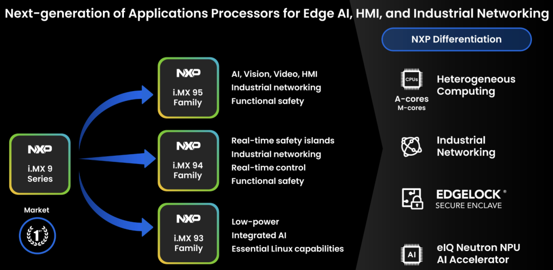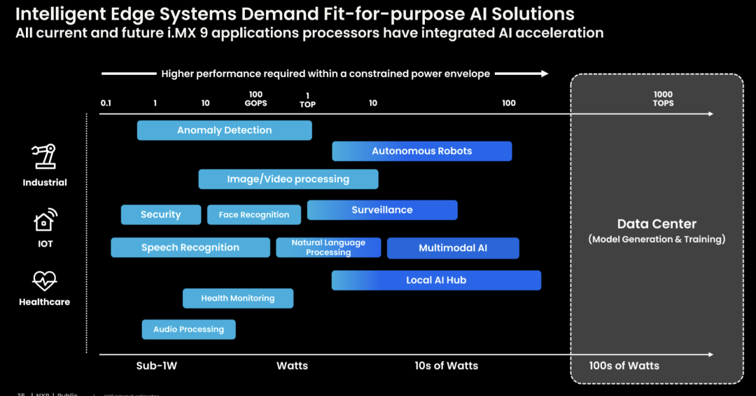 NXP's i.MX 9 series processors integrate the Neutron NPU (Neural Processing Unit), supporting applications ranging from basic inference to complex multimodal AI, including the eIQ AI development kit for optimizing AI model performance and efficiency.