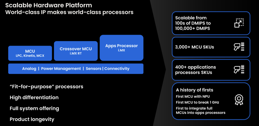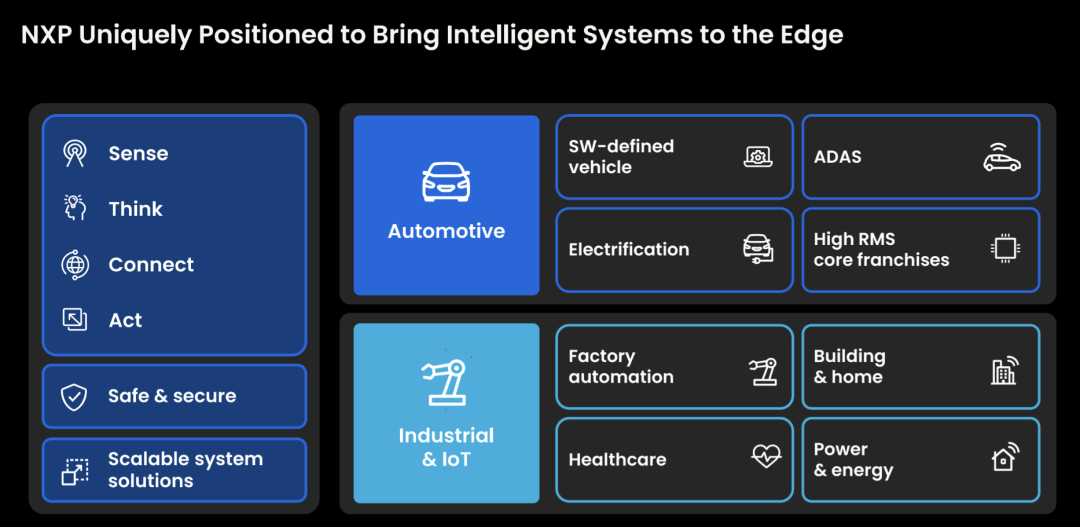 ◎ In the industrial and IoT sectors, NXP provides key technical support for the intelligent upgrade of traditional industries, assisting enterprises in realizing innovative applications such as predictive maintenance of equipment, optimization of production processes, and intelligent energy management, enhancing industrial digitization and intelligence levels, giving birth to new business forms and industrial collaboration models, and promoting the evolution of the industrial and IoT ecosystems towards intelligent interconnection and collaborative innovation, enhancing the overall competitiveness and added value of the industry.
