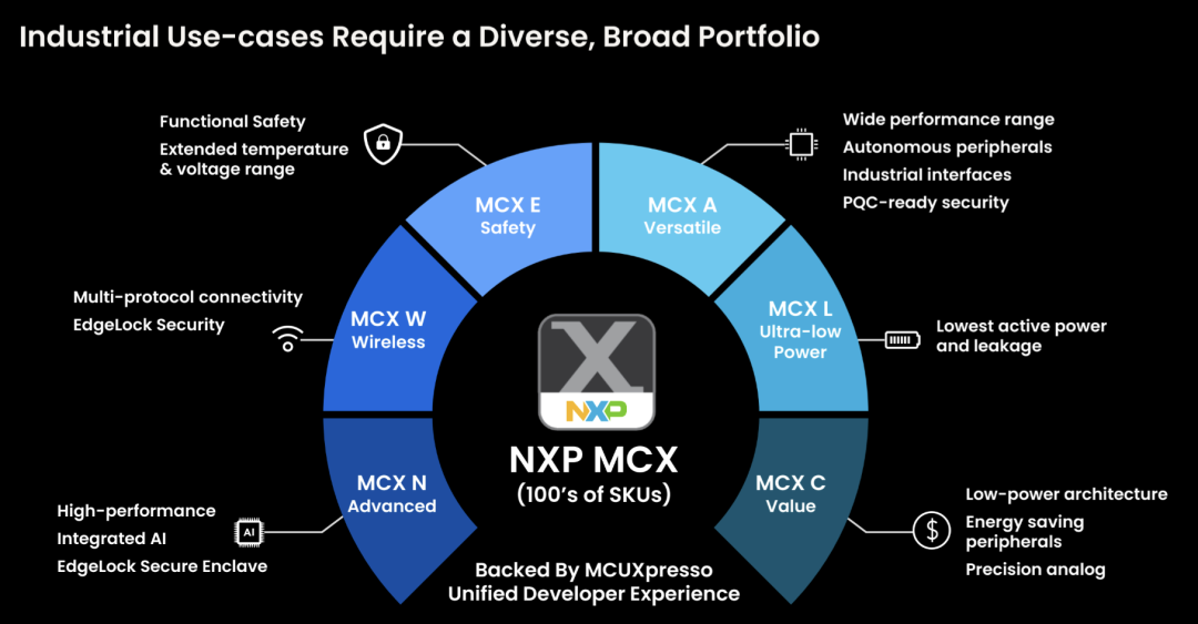 ◎ The MCX series of microcontrollers (MCUs), tailored for harsh industrial environments, integrates advanced AI cores, multi-protocol communication modules, and rich peripheral interfaces, widely used in industrial automation, smart homes, medical devices, and more.