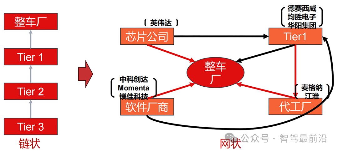 Today's automotive industrial chain has transitioned from a traditional "OEM-centered" model to a networked structure characterized by the "deep integration of software and hardware." Notably in the realm of intelligent driving, key technological components such as sensors, chips, communication devices, and in-vehicle computing platforms have emerged as pivotal players. Automakers can no longer handle the entire spectrum from design to production alone but rely on suppliers to furnish high-performance software, hardware, and related services.
