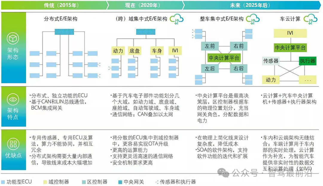 Automotive Electronic and Electrical Architecture (EEA) refers to the architectural design for integrating and controlling various electronic components and systems within a vehicle, including sensors, actuators, ECUs, wiring harnesses, etc. The EEA system's function is to control vehicle operation through efficient signal transmission and ensure the coordinated work of various subsystems. With the rapid development of intelligent driving, the number of sensors and control systems within vehicles has continuously increased, revealing the limitations of the traditional distributed architecture. To handle complex computational demands, the electronic and electrical architecture is transitioning from a distributed to a centralized design.