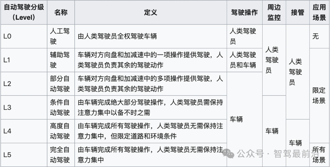 2.1 Classification Standards for L1-L5 Autonomous Driving Technology