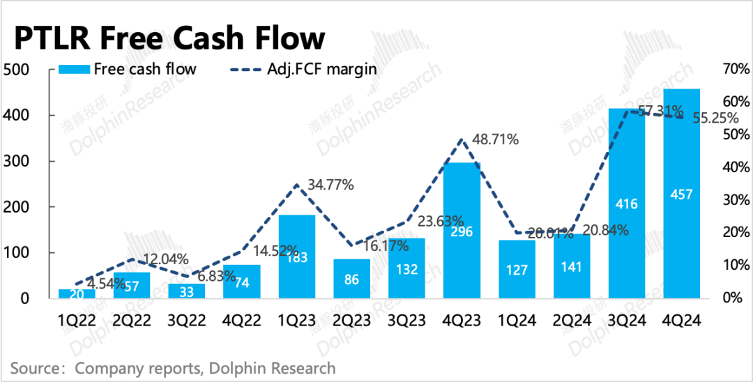 In Q4, Palantir achieved an operating profit of $11 million under GAAP, mainly due to a near-doubling of SBC expenses as the market value rose, thereby compressing profits. Excluding the impact of SBC expenses, Non-GAAP operating profit was $370 million, accelerating growth by 78% year-on-year, with profit margins increasing to 45%.