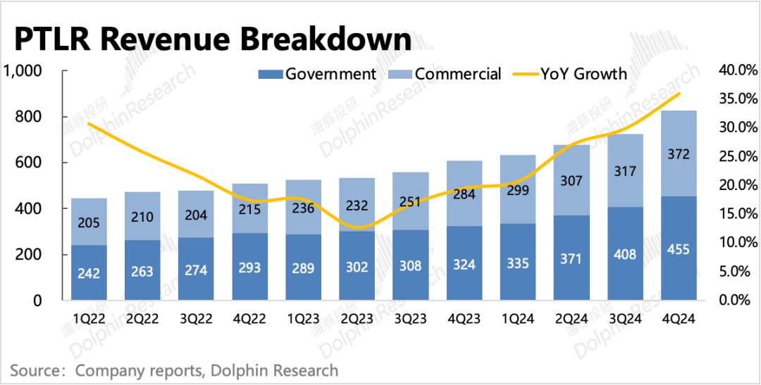 (1) **Government revenue remains the major contributor**: Government revenue in Q4 increased by 40% year-on-year, continuing its accelerated expansion, primarily driven by demand from the U.S. government. However, international government revenue also showed a recovery, mainly due to defense ministry orders from regions like the UK and Australia.