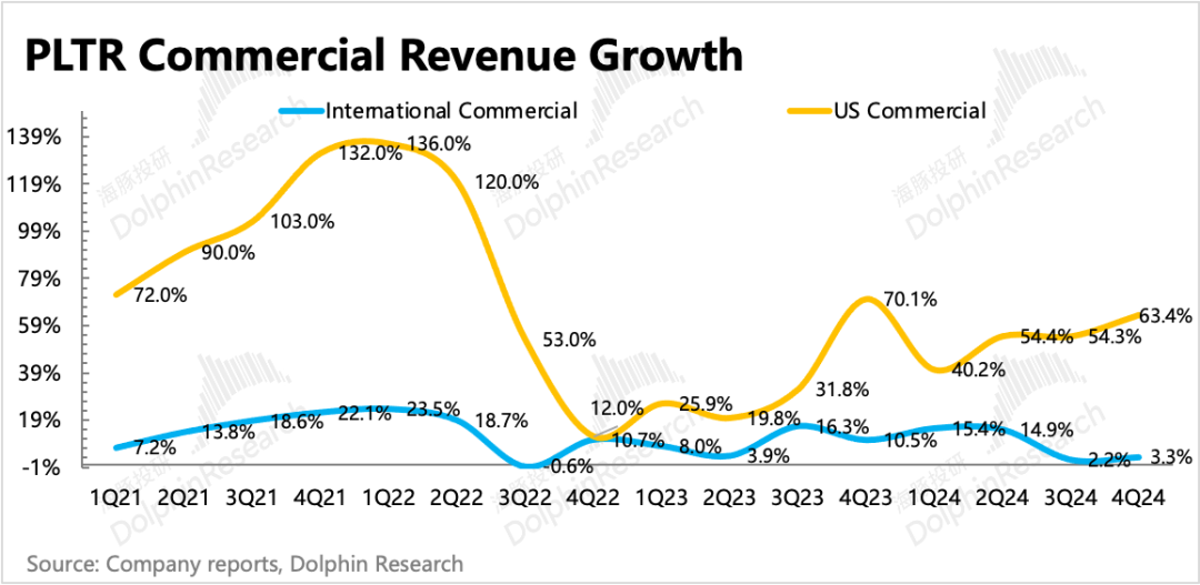 2. **Impressive Current Performance**: Besides the guidance, Q4 performance was also noteworthy. In the U.S. market, a key revenue contributor, both government and commercial revenues accelerated, fueled by strong demand for Foundry and AIP. The international market witnessed a recovery on the government client side, spurred by new contracts from defense ministries in the UK and Australia. International enterprise client revenue remained stable with no significant changes.