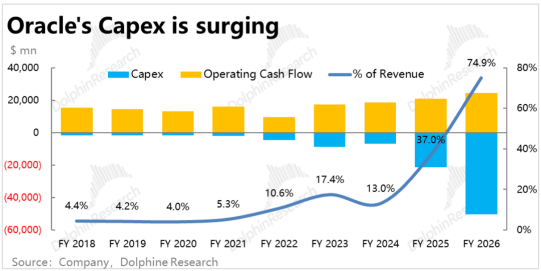 d. Significant Capex and Debt Pressure Already Exist, and the Peak Has Not Yet Been Reached: Similar to CoreWeave, the massive construction of new data centers has also imposed significant pressure on Oracle's cash flow and debt.