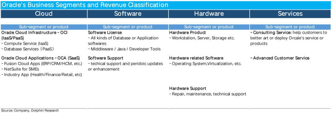 a. Cloud Business: Currently the most critical segment, further divided into IaaS (OCI) and SaaS (OCA) lines.