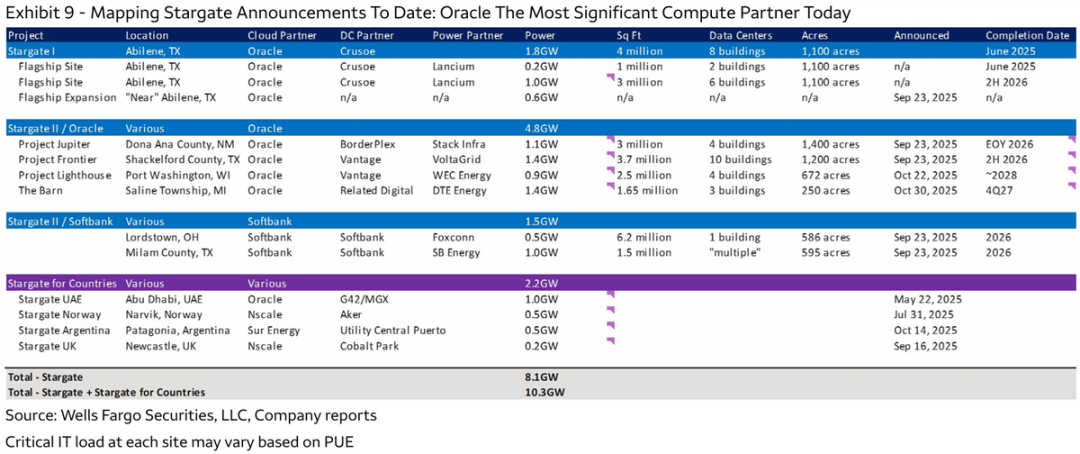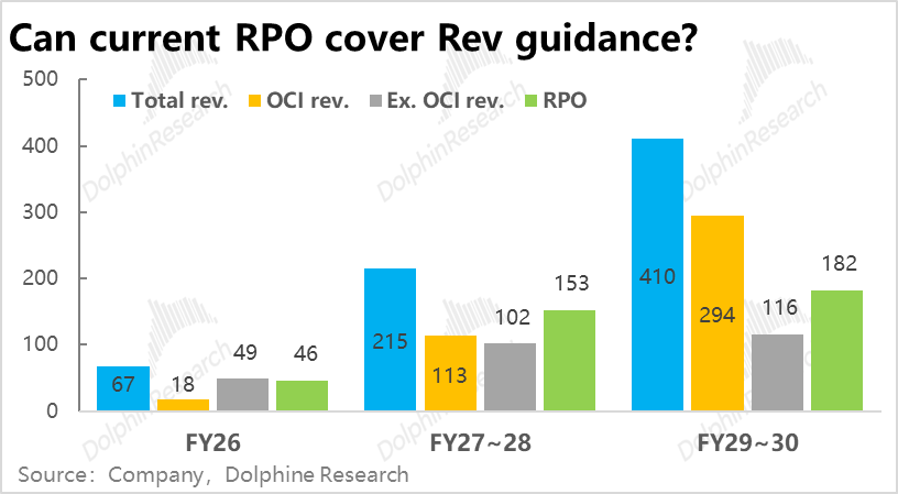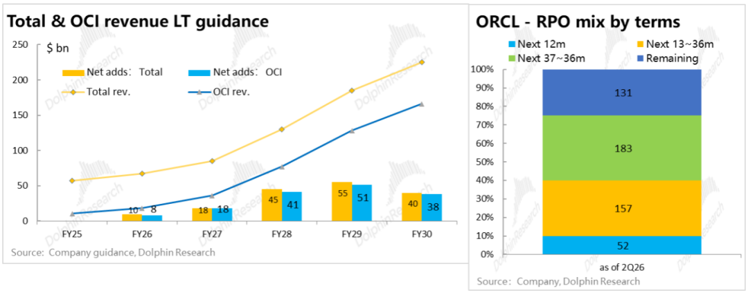 Combined with OpenAI's announcement on July 22nd of a new batch of computing power supply agreements with Oracle under the Stargate framework, adding approximately 4.5GW of capacity—namely, the four projects in Stargate II listed in the table below—the market believes that this annual $30 billion order corresponds to the Stargate II project. Assuming a five-year contract period, it was expected that RPO would increase by approximately $150 billion quarter-over-quarter in F1Q26.
